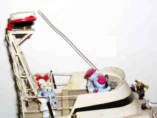 die Fischfangeinrichtung am Heck entfernt und