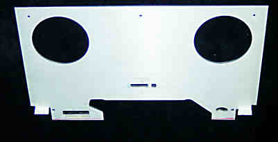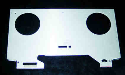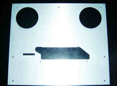 | Das Alublech der A88 deckt den Bedienteil der A77 ab und muss also entsprechend abgeschnitten werden. Die Auschnitte für den Andruckhebel rechts unten und das Zählwerk müssen in das Alu eingearbeitet werden Und die zwei Löcher für die Schrauben unten müssen gebohrt werden. |